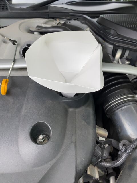 ノズルを付けるのなら漏斗要らないのでは…と思いましたが、最初は缶パンパンにオイルが入っているので少し傾けただけで出てくるので用意しておいて正解でした。作業⑤