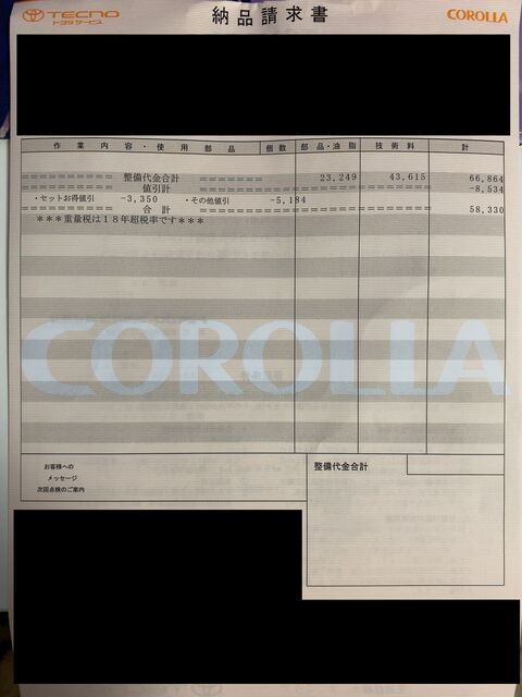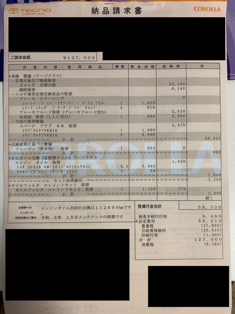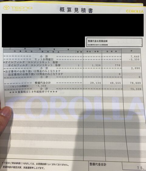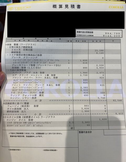 第一印象は当然高い!って思いましたが、余計な交換品や不必要なものがあるのでそれを除いて再度見積もりを出してもらいます。