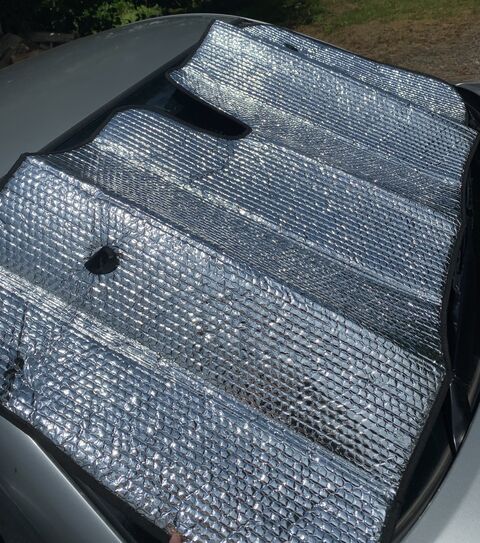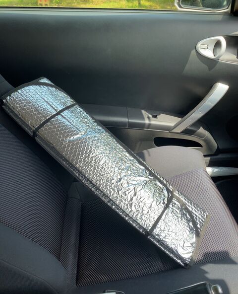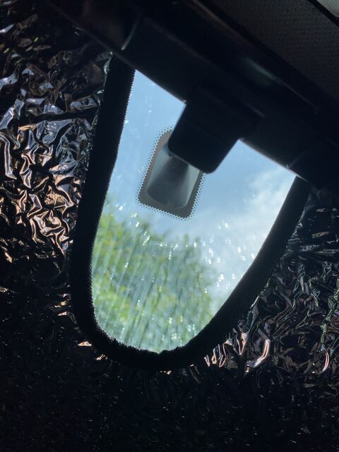 まずはフロントガラス外側に広げて大きさを確認してみました。