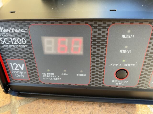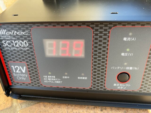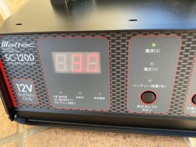 このままだとさらにバッテリーが弱ってしまい、最終的にはエンジン始動も困難になってしまうので、まだバッテリーが生きているうちに充電器である程度回復させたいと思います。
