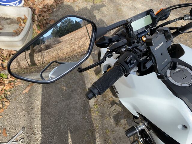 前回は可倒式ミラーに交換しましたが、可倒式に付属のミラーは武川と比べて見える範囲が狭いので少し不満がありました。