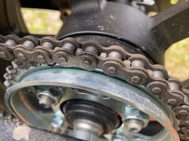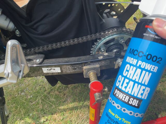 2025年07月13日 【JC92】グロムを購入してから初めてのチェーン清掃 つまり1年ぶり。 はじめにこのグロムを購入して約1年が経ちますが、走行距離が1000kmにも満たないので後回しにしていました。ただ、いい加減やらないとチェーン自体が錆びてきそうなので重い腰を上げて掃除をしたいと思います。用意したもの・チェーンクリーナー ・チェーン清掃用のブラシ ・チェーンルブ・リアメンテナンススタンド 清掃前のチェーンの状態清掃する前に現在のチェーンはこんな感じです。見事に汚れています。そしてチェーンのグリスも乾いていますね。作業①まずはメンテナンススタンドでリアタイヤを上げて、上部のタイヤカバーを外します。左右で合計3箇所のボルトがあるので外します。作業②カバーを外したら適当な布やシートを掛けておきます。こうすることで清掃中の汚れがホイールや車体に付くのをある程度防いでくれます。作業③あとはチェーンクリーナーとブラシを使ってひたすら汚れを落とします。作業④綺麗になったら最後にチェーンルブを吹きつけ、余分なグリスを適当な布で拭いたら完了です。余分なグリスに関しては、結構ガッツリ拭き取って大丈夫です。どうせ吹きかけたグリスは連結部の中まで浸透してますし、むしろ余分なグリスが残っているとホイール周辺が汚れるので。清掃後の感想正直言って清掃前後で特に何も変わりません。チェーン自体の動きはグリスを塗ったので滑らかになっているはずですが、体感できるほどではありませんね。デイトナ(Daytona) バイク用 リアサスペンション グロム(13-20)専用 250-258mm 車高調整機能付き 乗り心地改善 強化リアショック ブラックボディ/レッドスプリング 92482デイトナ(Daytona)Homwarm バイクロック チェーンロック バイク 自転車 ワイヤーロック φ(直径)22mm×1200mm 頑丈 盗難防止 鍵3本セット (ブラック)YunzhongluKaedear(カエディア) バイク ロック チェーンロック 鍵 チェーン 長さ1000mm スクエアチェーン径 6mm 高耐久 シリンダー 盗難防止 キー 紛失 複製サービス KDR-LK1-1000-BK (1000mm, ブラック)Kaedear